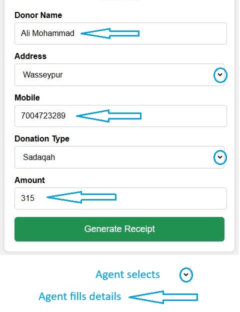 जब कोई एजेंट किसी शख़्स से चंदा हासिल करेगा, तो वह उस शख़्स की मालूमात सिस्टम में दर्ज करेगा।